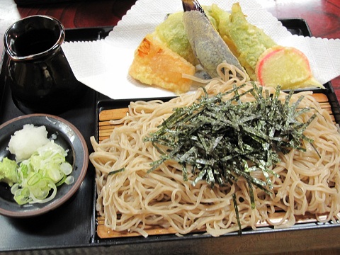手打ちお蕎麦のお店で野菜天ざる蕎麦です。