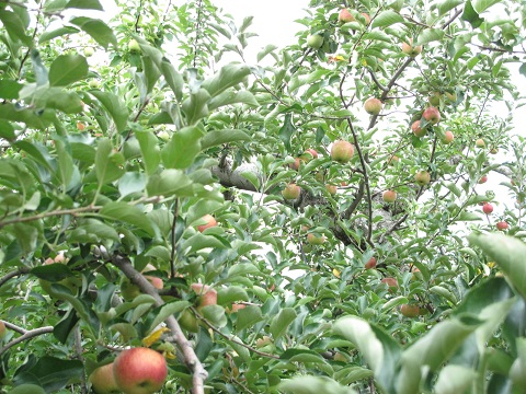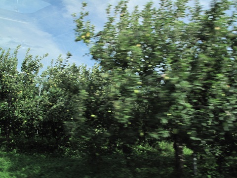 林檎畑を車の中から激写!次の目的地へ移動中。